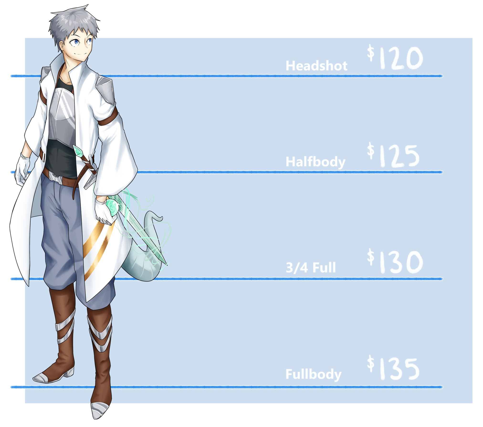 Pricing shown here is a rough guide and may vary based on complexity, additional elements, backgrounds, excessive changes, and the like. Please contact me if you have any questions!