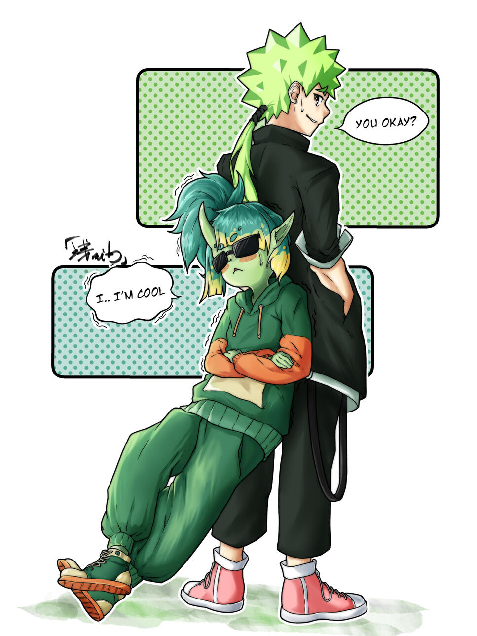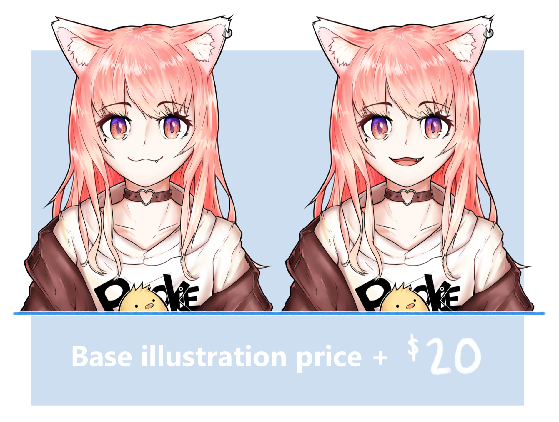 - I reserve the right to post any commission I draw to social media and include it in my portfolios as a piece that I made.- You may not claim that you drew the pieces that I make under any circumstances.- If you would like your piece kept a secret for the time being (if you would like to do a VTuber model debut, for example), please let me know a timeframe after which I can post/stream your piece and include it in portfolio work.